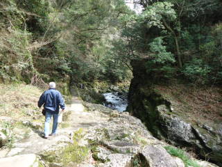 その昔阿蘇火山活動の噴出した溶岩流が、五ヶ瀬川に沿って帯状に流れ出し、急激に冷却されたために柱状節理の懸崖となった渓谷。